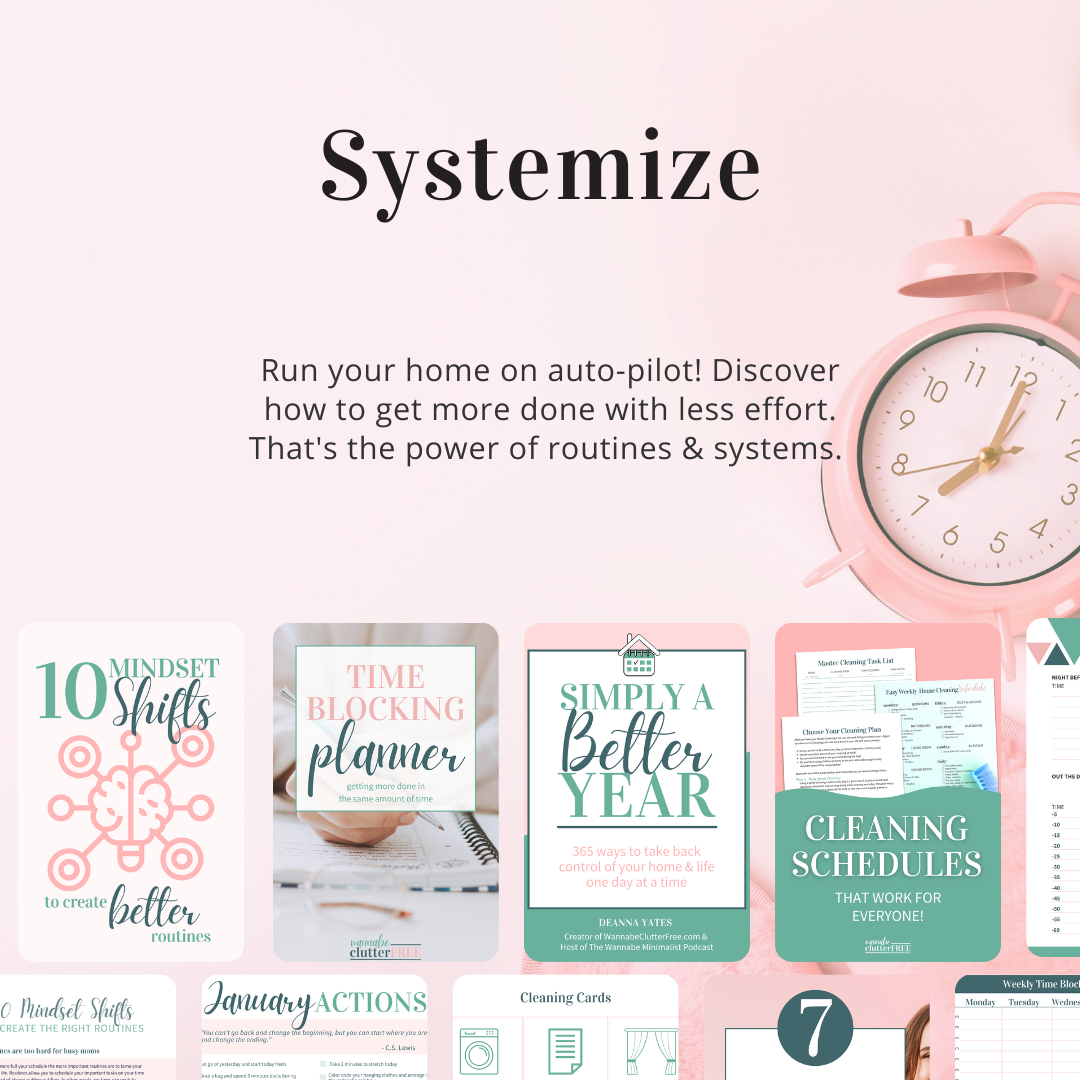 Over the course of 8 modules, you’ll conquer 4 key areas - your mindset, your stuff, getting organized, & creating systems & routines - by taking small, but mighty actions that build up over each lesson.